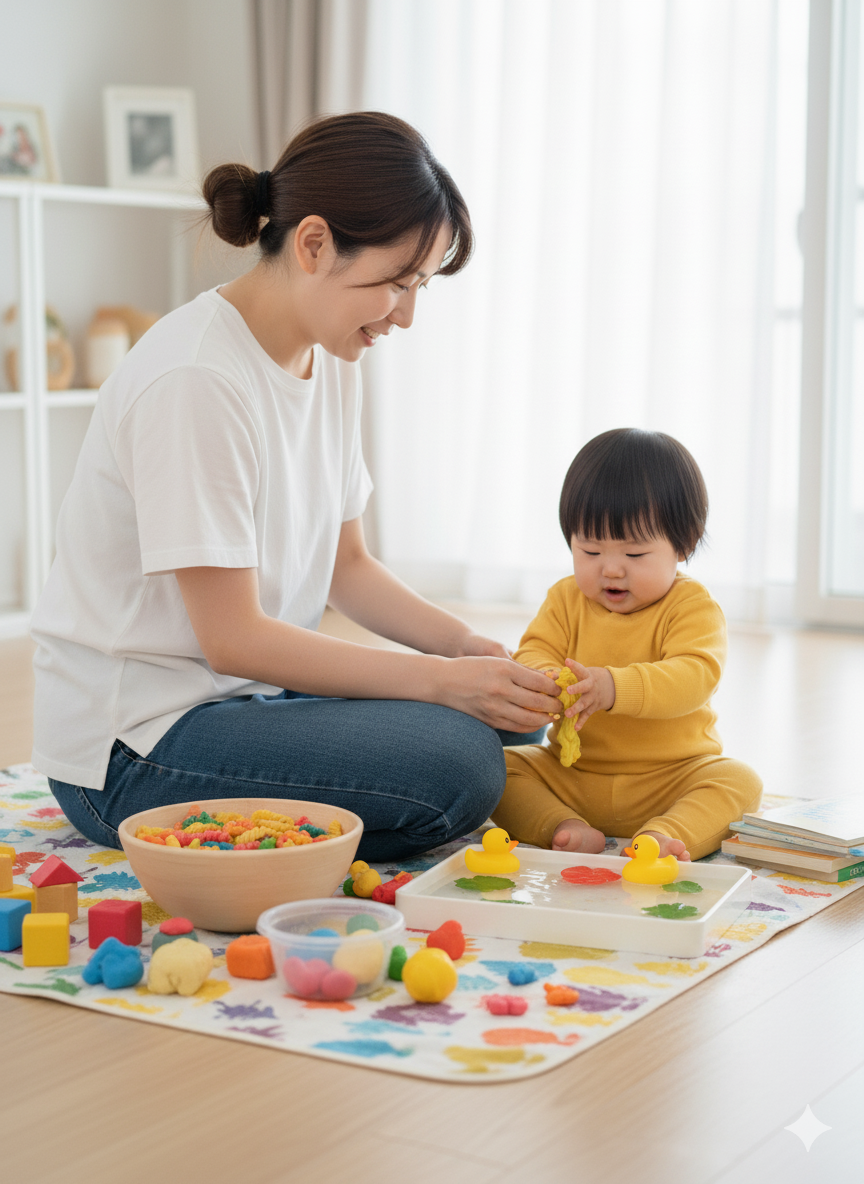 - 다감각 통합: 한 번에 2-3가지 감각을 함께 자극하면 뇌 발달 효과가 극대화됩니다.