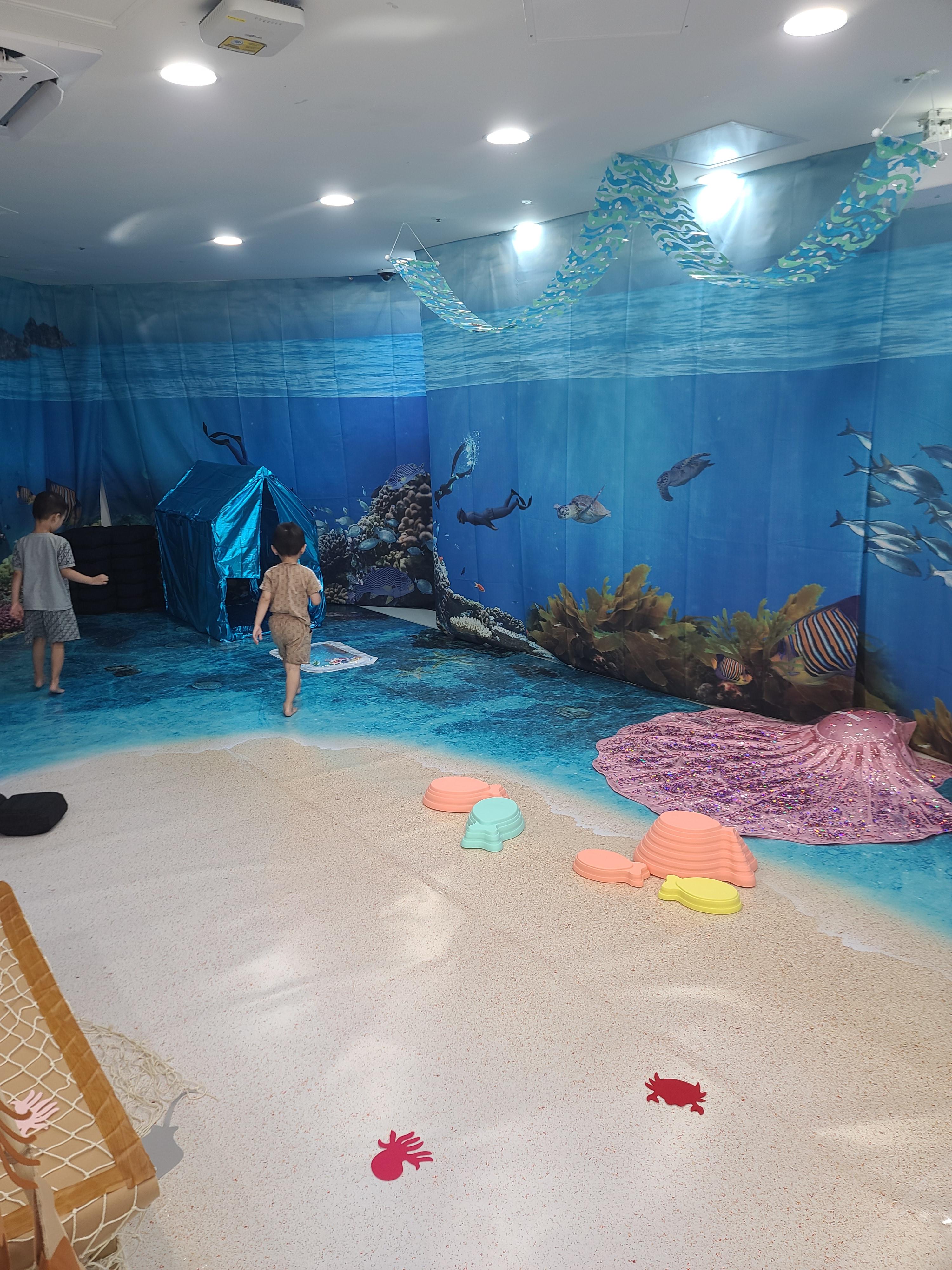 계절감을 느낄 수 있게 테마가 바뀌는 것 같아요. 현재는 바닷속 공간으로 꾸며져있어요! 너무 예쁘죠?