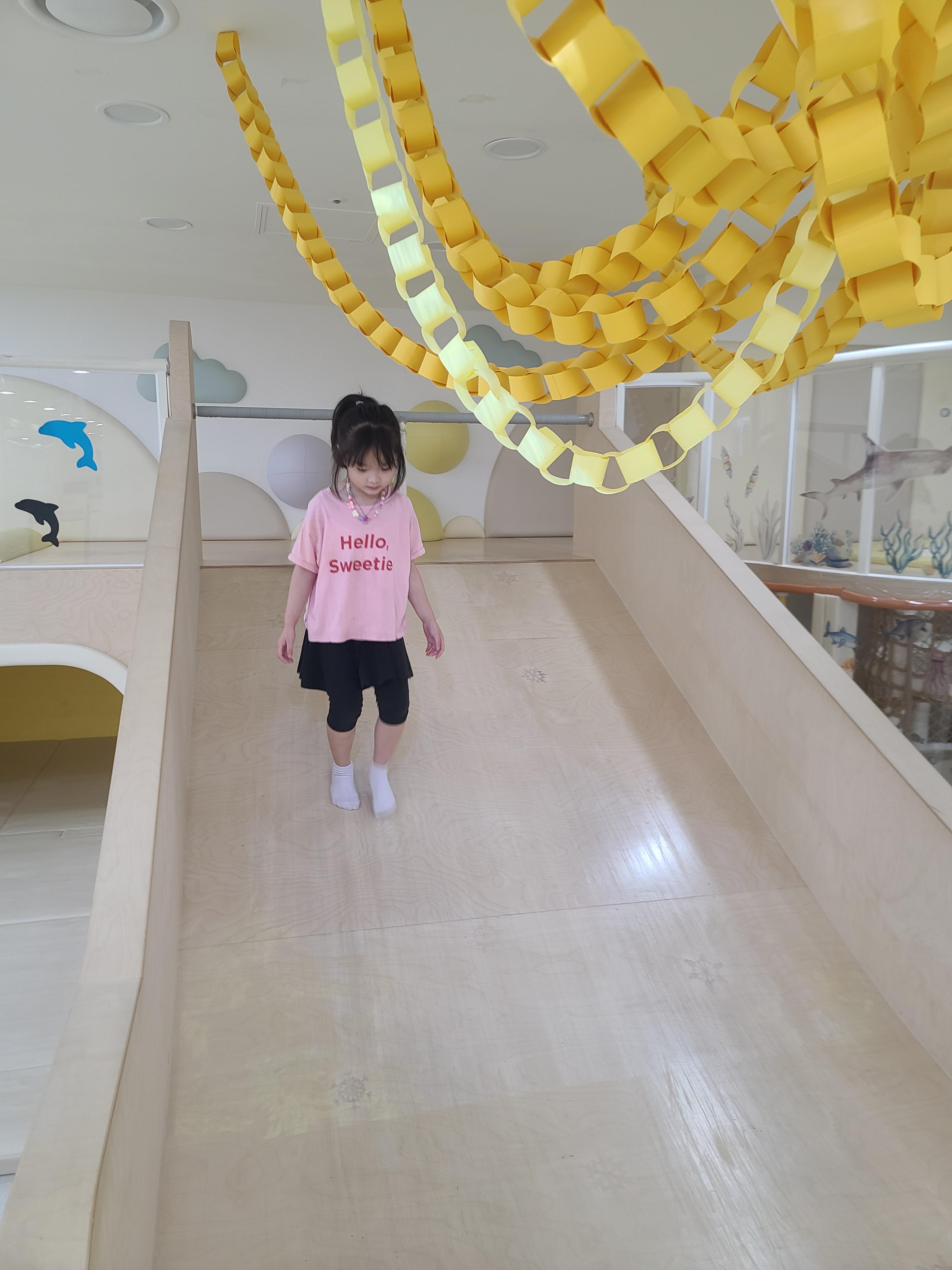 여기는 영유아들을 위한 공간이에요! 키 100cm 이하 아기들도 이용가능해요. 미끄럼틀도 완만하고 1인용 트램펄린도 있어요.